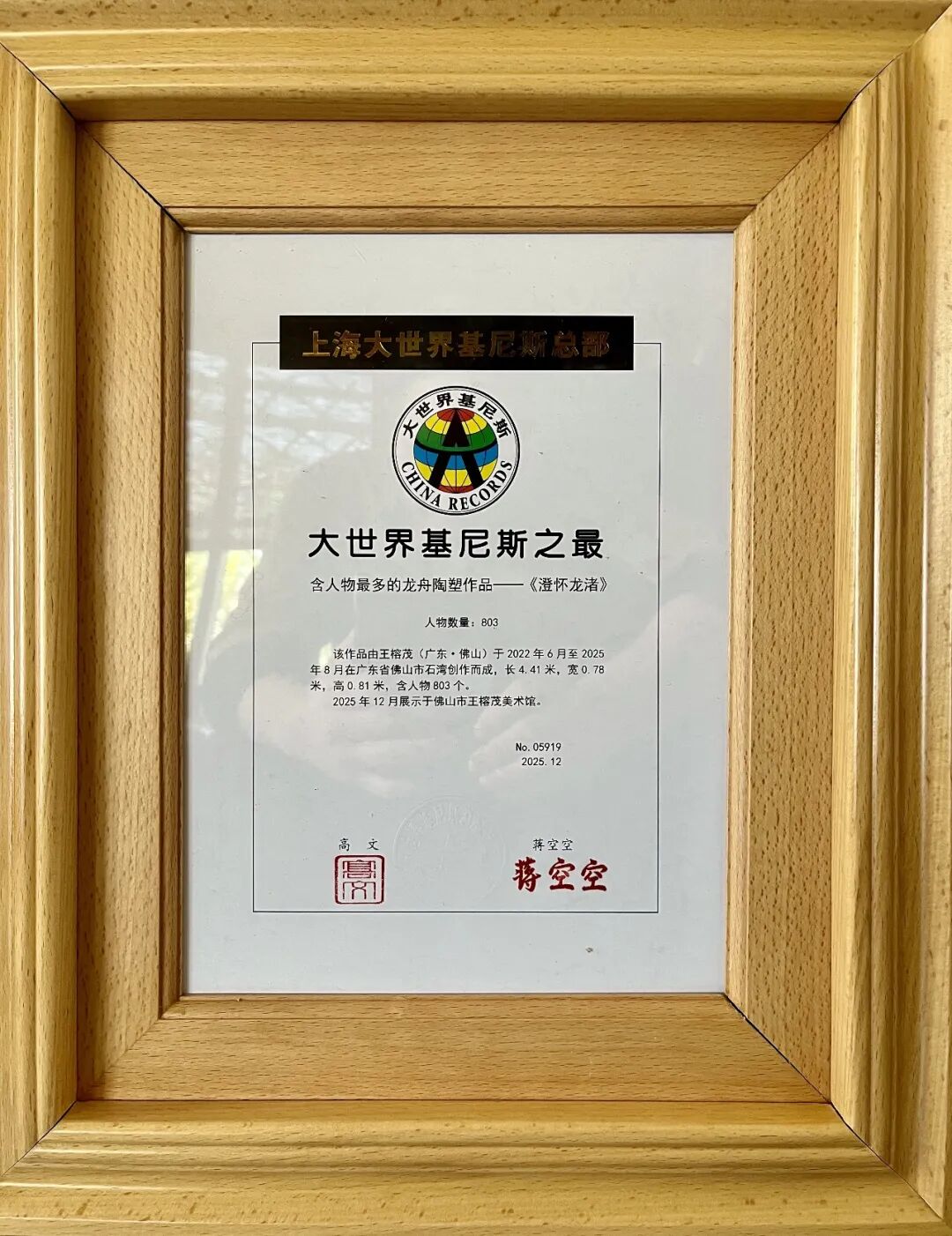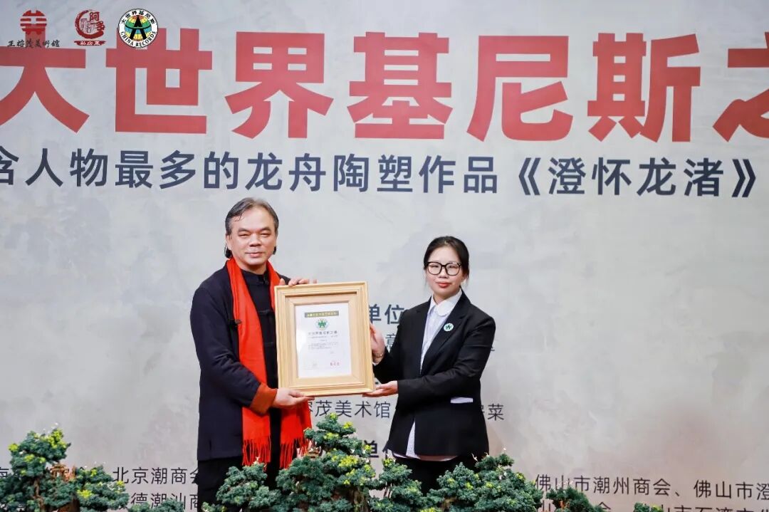 2026年1月17日下午,大世界基尼斯之最-含人物最多的龙舟陶塑作品《澄怀龙渚》颁证仪式在王榕茂美术馆成功举行。