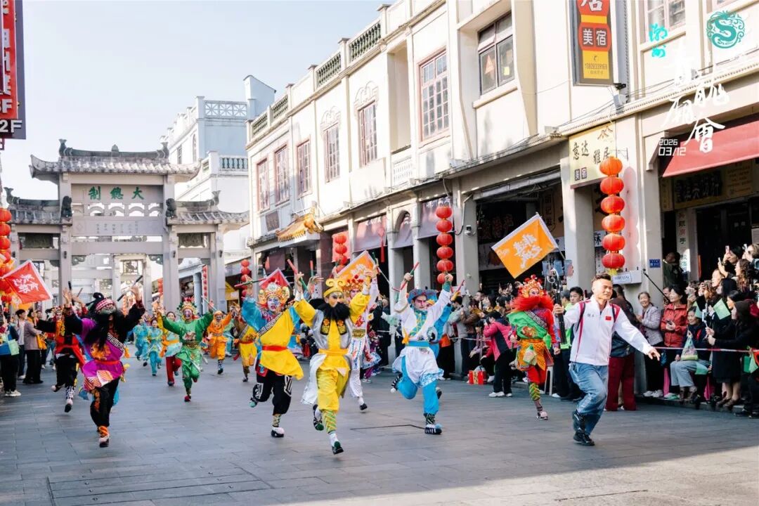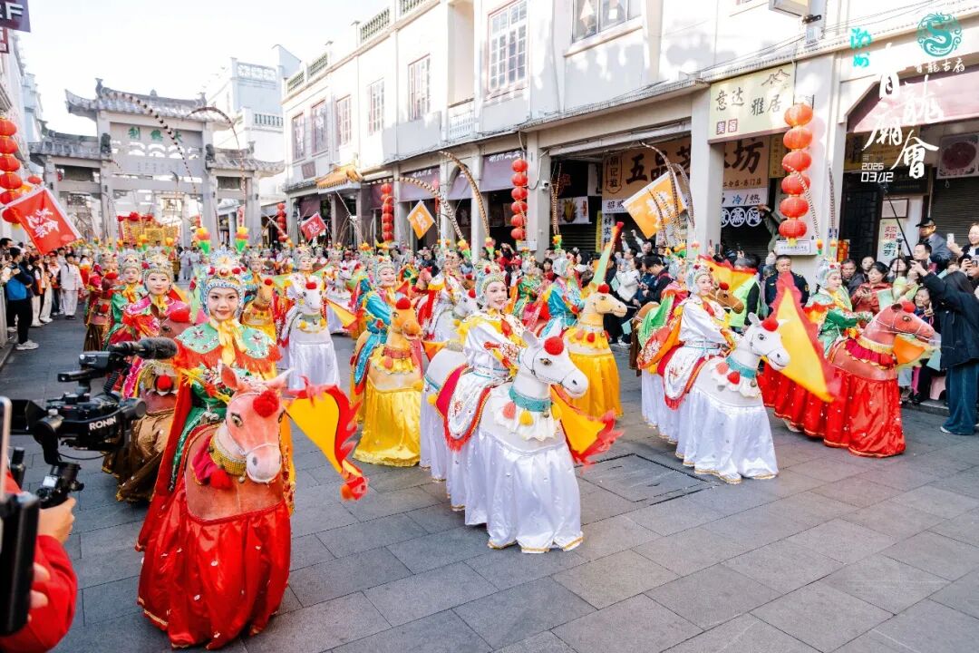 海内外潮人、八方游客,汇成欢腾的人潮,共享全球潮人的民俗文化“嘉年华”,共沐祥瑞福气,共祝家国兴旺。 骏马奔腾 昂首阔步,巾帼英姿跃然眼前,布马舞出一往无前的勇毅,寄寓潮人奋勇争先、马到成功的美好期许。 海内外社团近千名嘉宾,再赴非遗巡游之约,潮团旗帜飘扬。这一刻,是天下潮人根脉相连、同心同行的最美见证。这是继第二十三届国际潮团联谊年会成功举办后潮人的又一场温暖的团聚,以非遗为桥,以乡情为脉,让天下潮人的归潮之情再度升温。 一场巡游,是非遗的活态传承,一次相聚,是侨心的深情相拥,我们在传承中看见团结拼搏、感恩奉献的潮人本色,在相聚中激荡起敢为人先、开拓创新的满腔热血。 作为省级非物质文化遗产代表性项目,青龙庙会承载着海内外潮人祈求平安、风调雨顺、合境安康的美好心愿,愿这场非遗盛事让大家记住潮州的千年文脉、人间烟火,记住“家己人”最真挚的赤子情怀。 浙江游客:客栈里面的工作人员向我们推荐,很隆重,让我大大开了眼界。 市民:一张非常好的宣传名片,潮州现在的旅游业,美食也好,景点、文化都非常好。 巡游人员:为了这次巡游的展演,我们做了充分的准备,从动作节奏到整体整齐度都力求最好,用饱满的姿态来迎接这场民俗盛典。 巡游人员:今天布马舞的特色就是布兵摆阵,由24匹马组成,祝大家马年大吉,马到成功。 湘桥区潮州王伉传统文化研究会会长 谢松青:我们今年精心挑选了18支巡游团队,像这支南山的英歌队、大明汉服的传统服饰队都是非常精彩的,还有黄飞鸿的舞狮也是我们全运会表演的重点节目。潮州青龙庙会是潮州最传统的文化的集中体现,也是潮州非遗的集中体现,可以说它是一个“移动的非遗博物馆”。